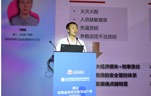 国家商用制冷设备质量检验检测中心主任司春强介绍了肉类冷链检测评估及数智运维方案。他表示,目前行业现状为冷库安全风险高、使用成本高、管理成本高。此外,他还分享了工程和产品案例。