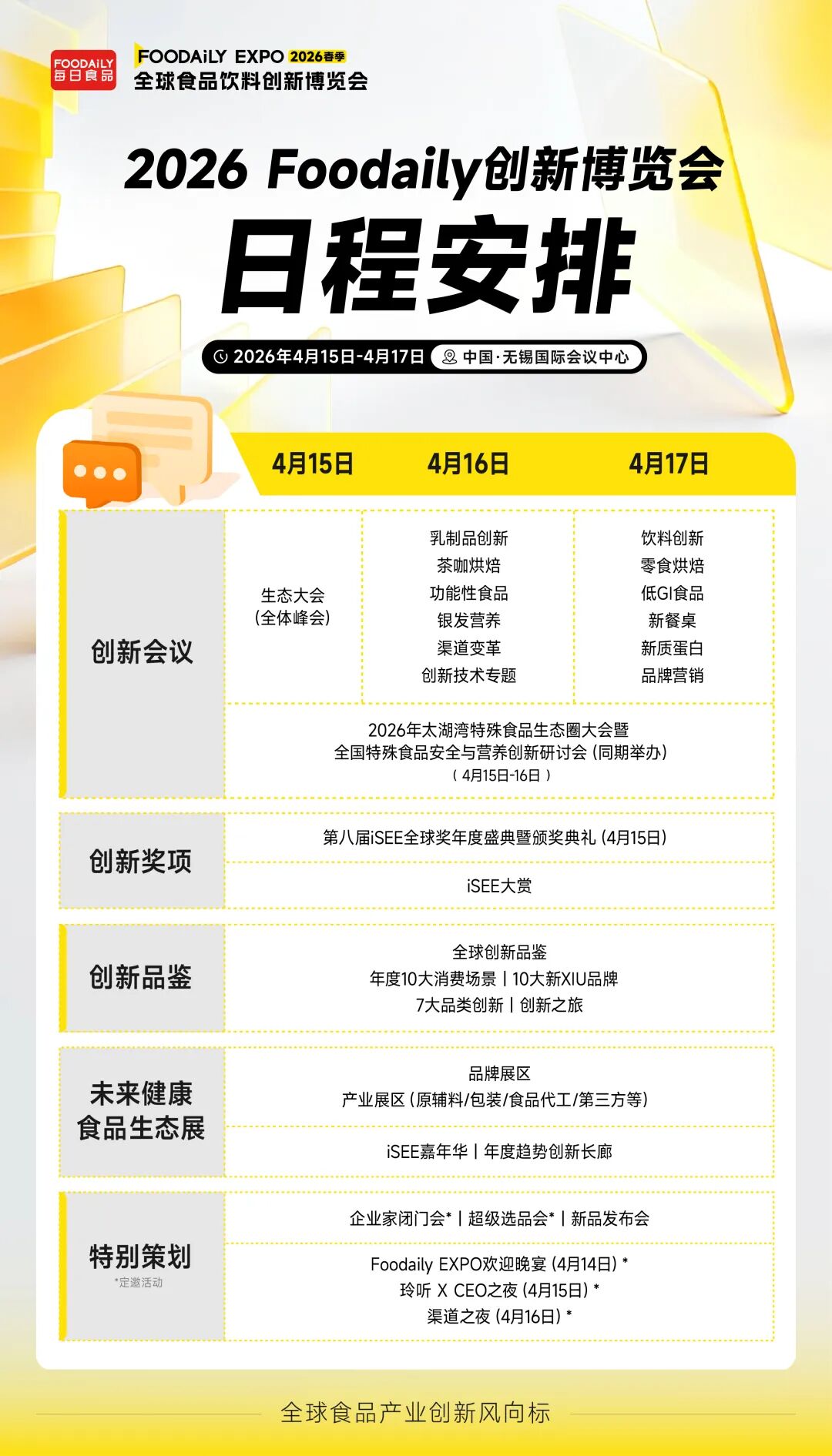 2026年4月15日-17日,中国·无锡国际会议中心,第十一届Foodaily 全球食品饮料创新博览会,以「聚力健康12539;重塑增长」为主题,为您带来这份关于创新增长的“确定性答案”!