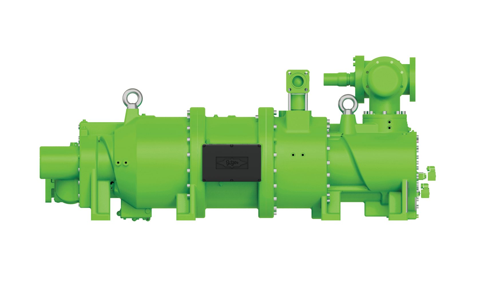 适用于速冻工况的 SHST 双级螺杆压缩机 全新 SHST 双级螺杆压缩机系列是比泽尔展位核心展品之一,专为严苛速冻及低温工况研发。该产品针对低 GWP 制冷剂优化设计,可应对 2029 年后 GWP 管控升级带来的行业变革,保障设备长期稳定运行。